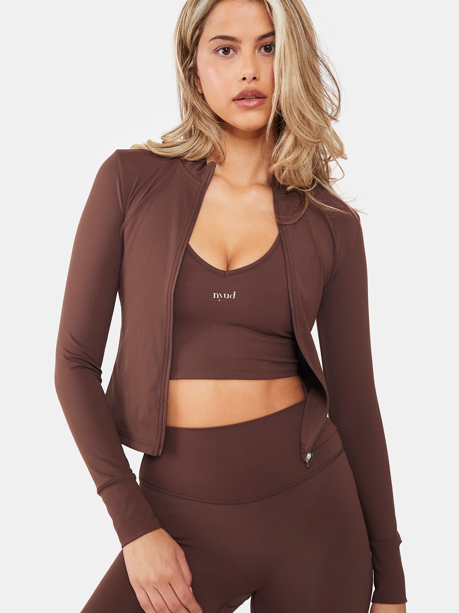 Designed in our sustainable, light weight Airbrushed™ fabric and crafted to sculpt your figure. This jacket features a mock neck, flush zipper and has a contouring yet smoothing look.