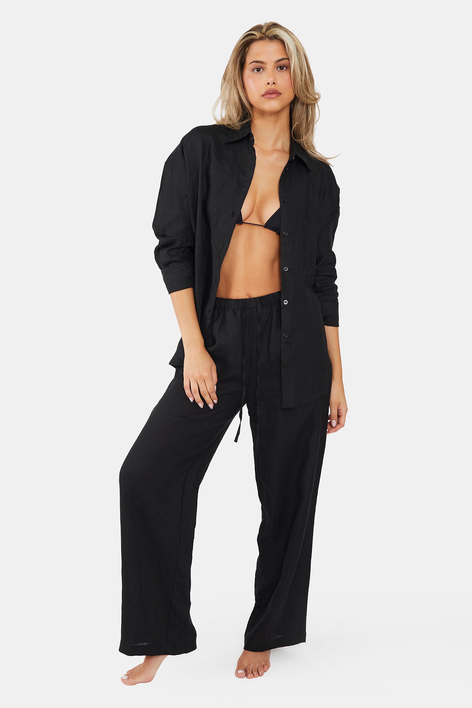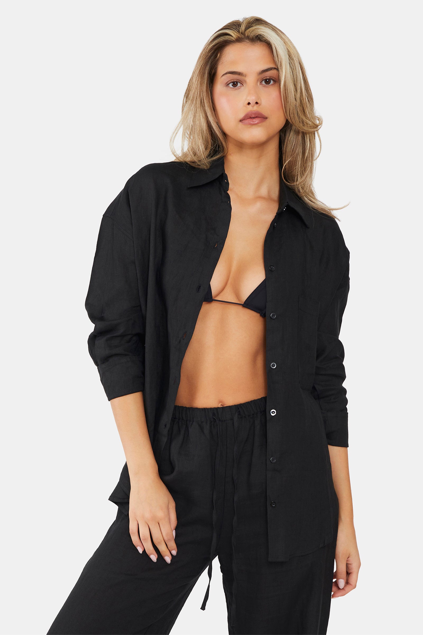 Designed in our 100% pure French linen, the Linen Shirt is the ultimate transitional piece to be worn over your favourite swimwear or paired with trousers. It's semi-sheer, light weight and features an oversized left front pocket.
