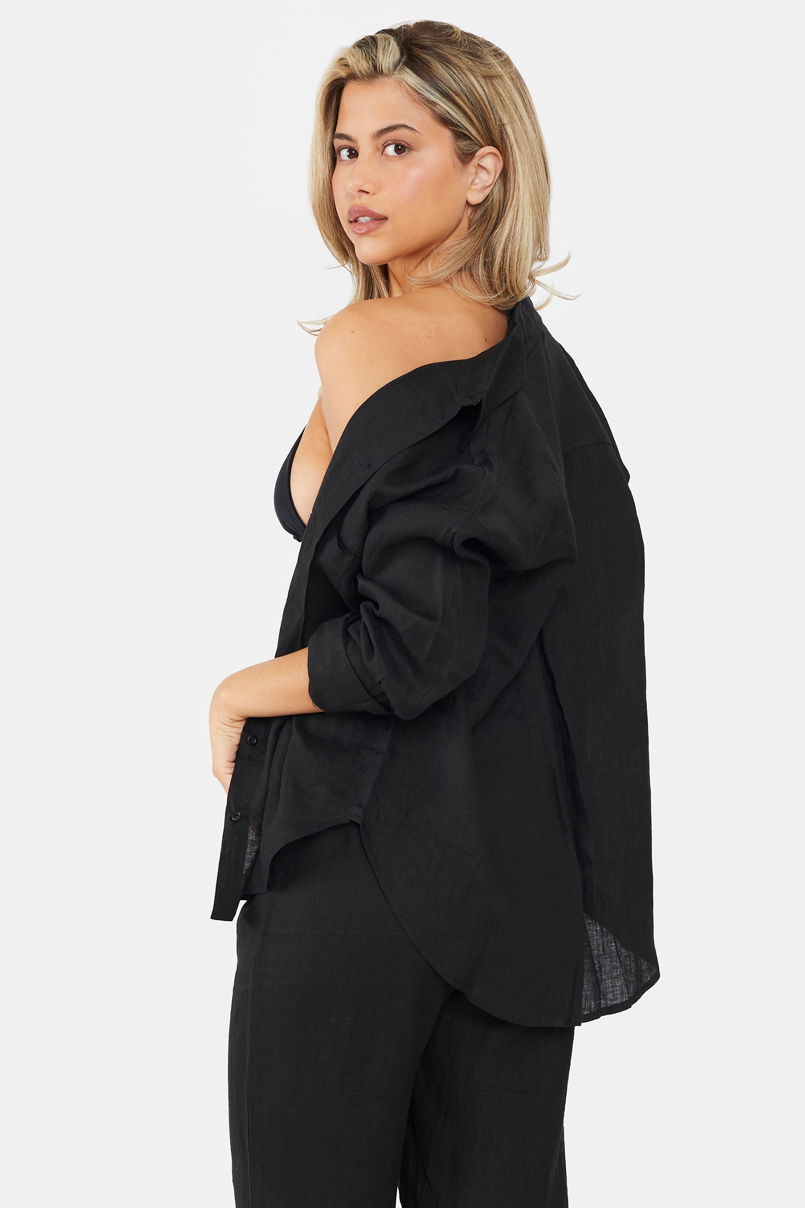 - The Linen Shirt fits oversized.