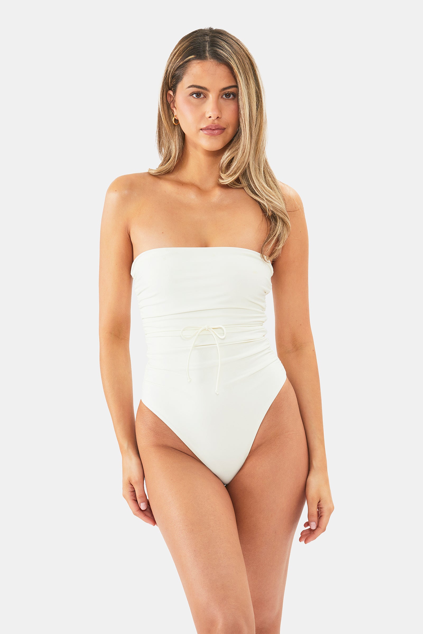 The Palma features ruched sides to cinch your waist and a high cut to elongate your legs. This one piece has a flattering square neckline, adjustable neck ties and cheeky back coverage. Don’t limit her to the beach, the Palma doubles as the perfect bodysuit.