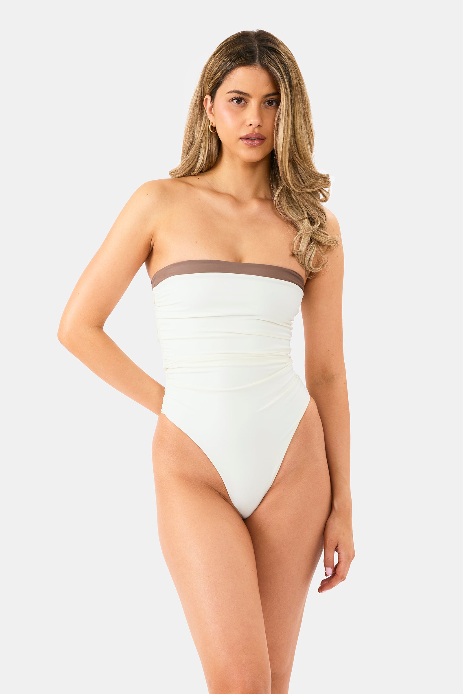 The Palma features ruched sides to cinch your waist and a high cut to elongate your legs. This one piece has a flattering square neckline, adjustable neck ties and cheeky back coverage. Don’t limit her to the beach, the Palma doubles as the perfect bodysuit.