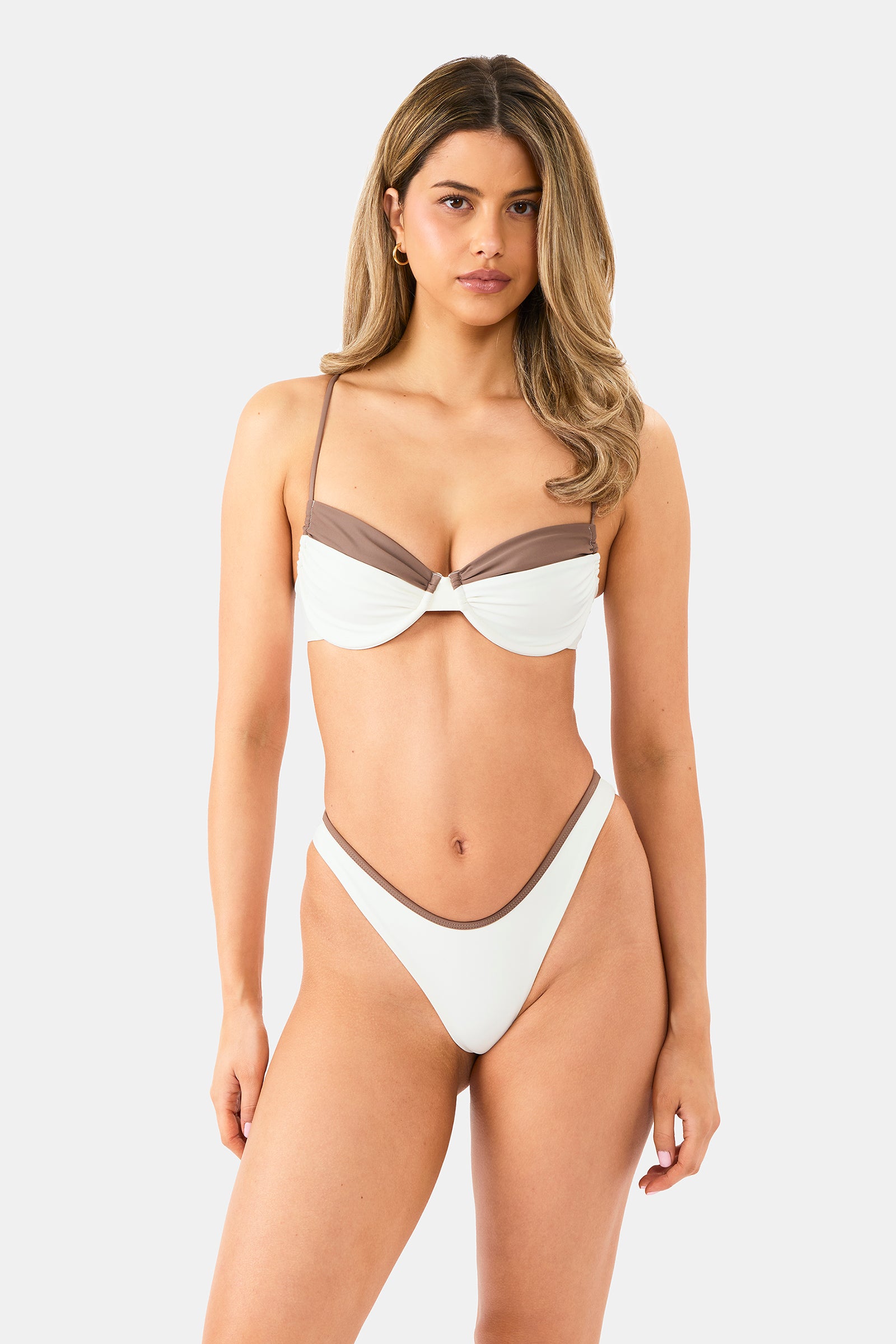 The Sloane is one of our best sellers with its supportive underwire design. It features a side cup adjuster for two different looks - full coverage cup or ruched cup. Designed with adjustable straps and a back tie, allowing you to find the most comfortable fit.