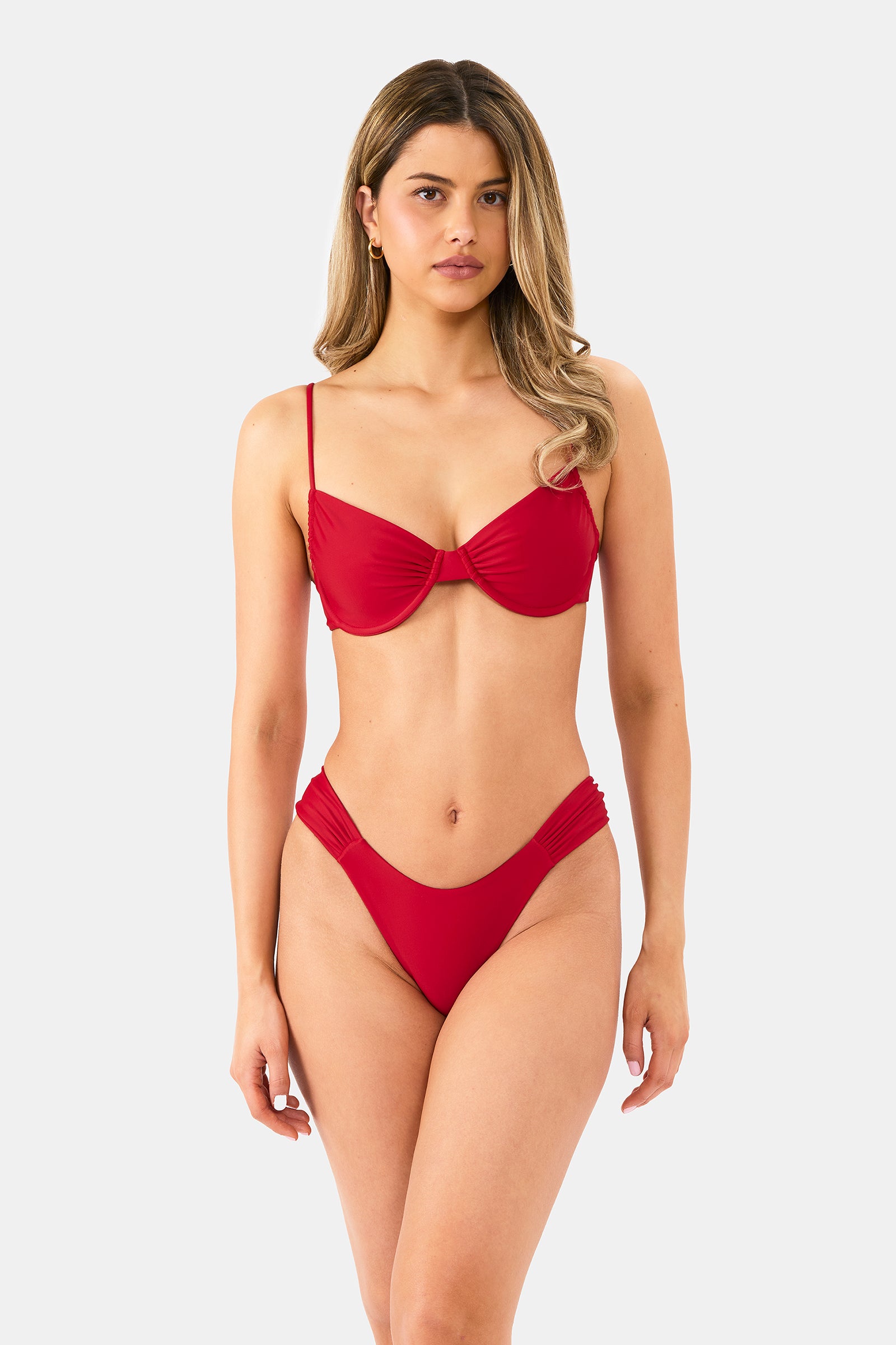 The Sloane is one of our best sellers with its supportive underwire design. It features a side cup adjuster for two different looks - full coverage cup or ruched cup. Designed with adjustable straps and a back tie, allowing you to find the most comfortable fit.