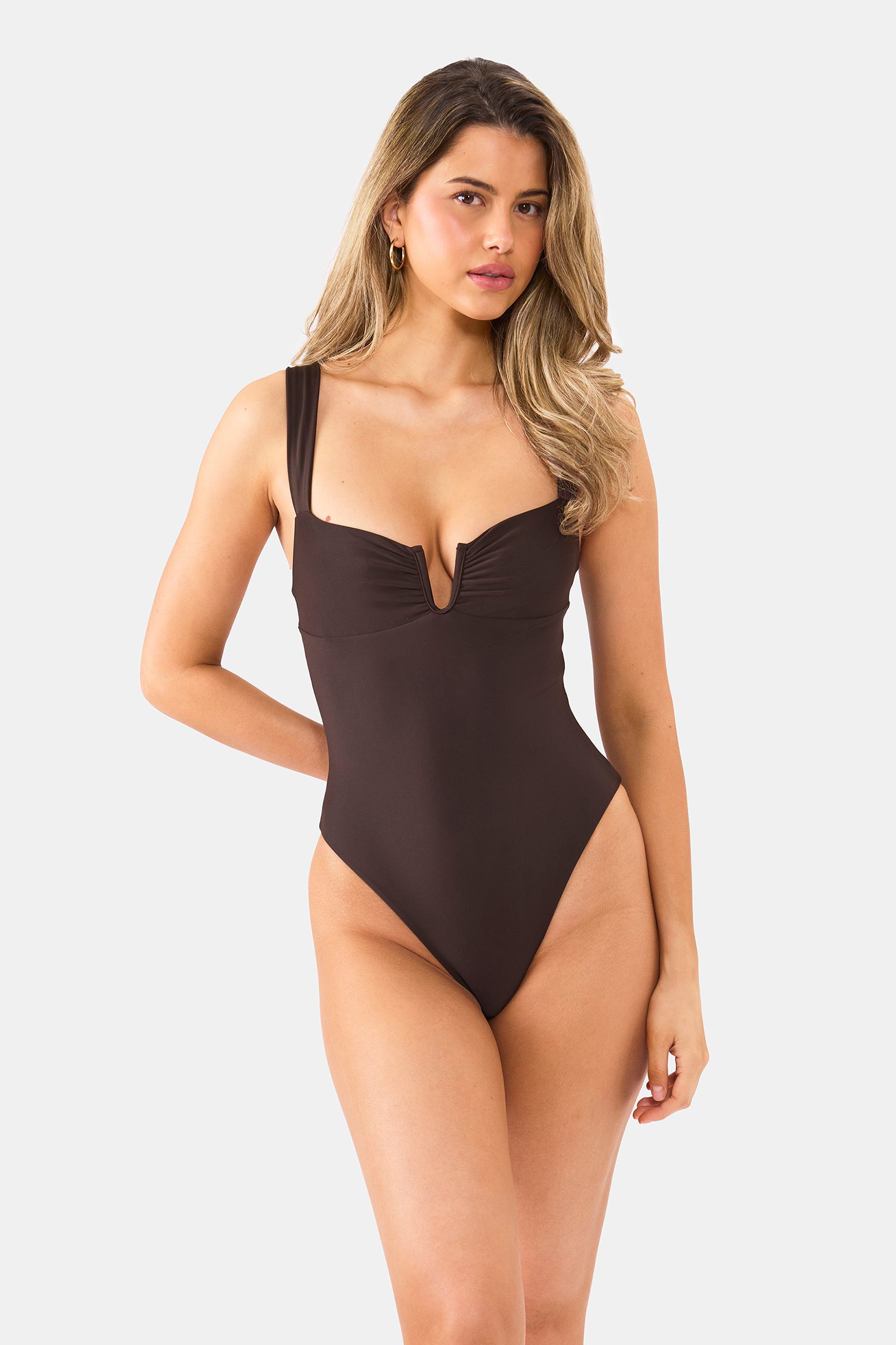 The Tropea is a timeless & chic one piece with moderate coverage. This one piece lends more support with thick, adjustable straps and a plunging ‘U’ neckline that compliments your bust.