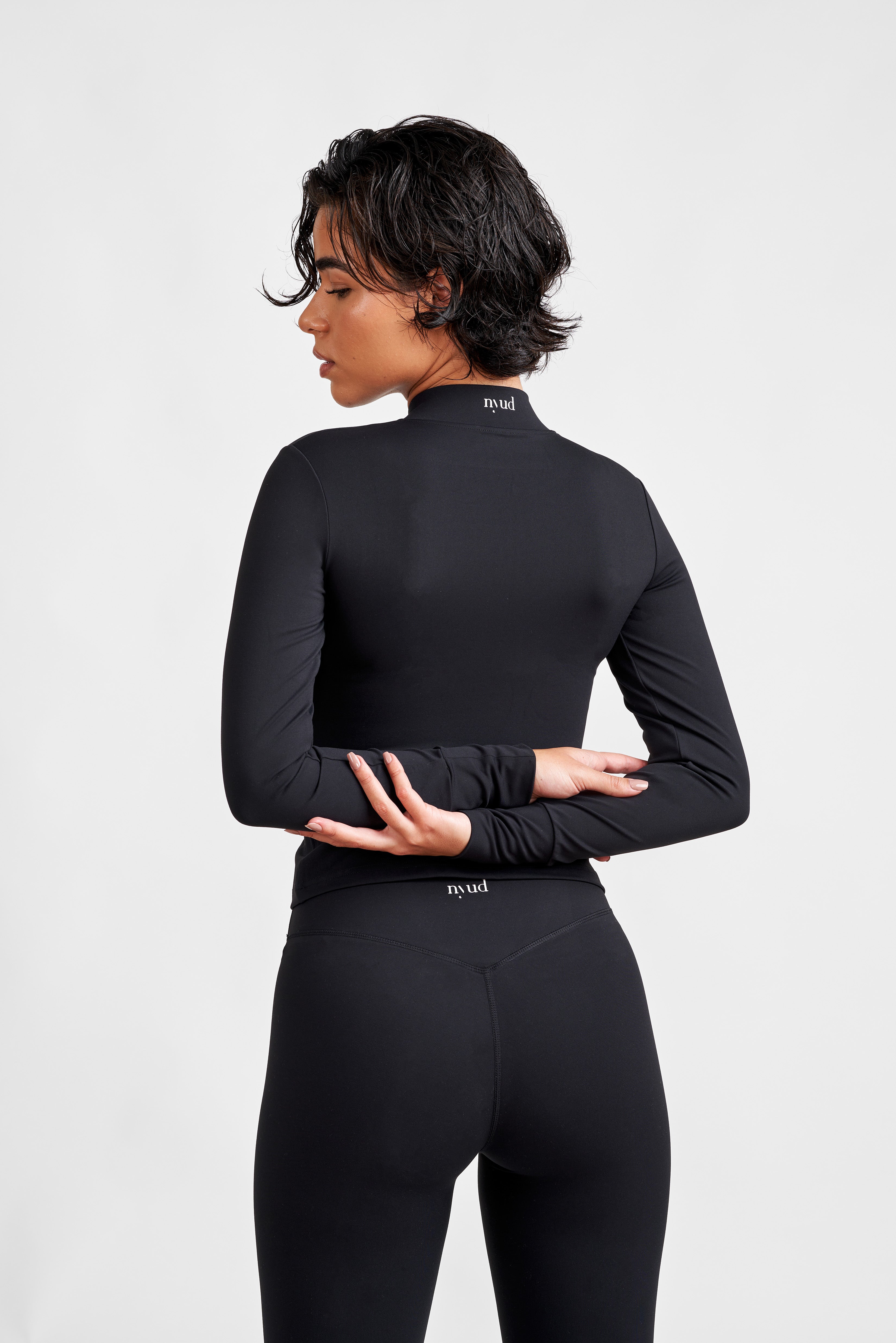 I purchased the whole activewear set in Nero and I am SO happy I did! I wear the full set into rehearsal every week and this jacket adds the perfect layer to wear while stretching and wrapping up my day! As someone with a short torso, the fact that this is a bit shorter means the zipper does not scrunch and it is the outfit topper I wear the MOST!! Purchasing again in Haze and I cannot wait to mix and match this fit!