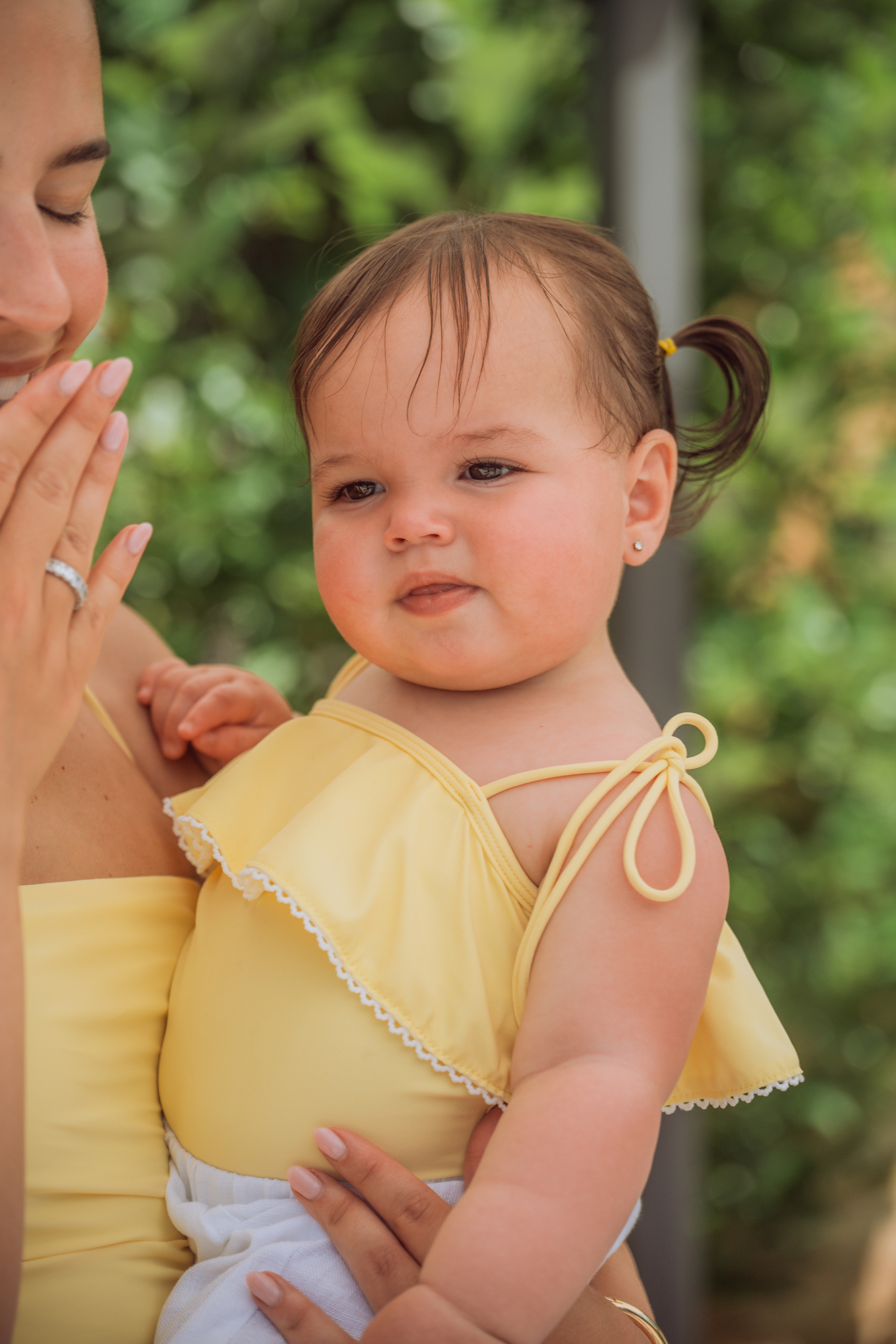Introducing Mini by Nyud, a collection thoughtfully designed for matching moments with your little one. Crafted in our signature luxe fabric and features delicate ruffle detailing, scalloped trim, and adjustable tie straps that form soft, feminine bows.