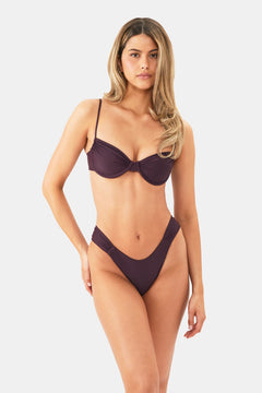 A new staple in your capsule wardrobe. The Beau has cheeky to moderate back coverage with stitching to hold the fabric in place. These bottoms have thick sides with ruched detailing that can be styled high or low on the hip.