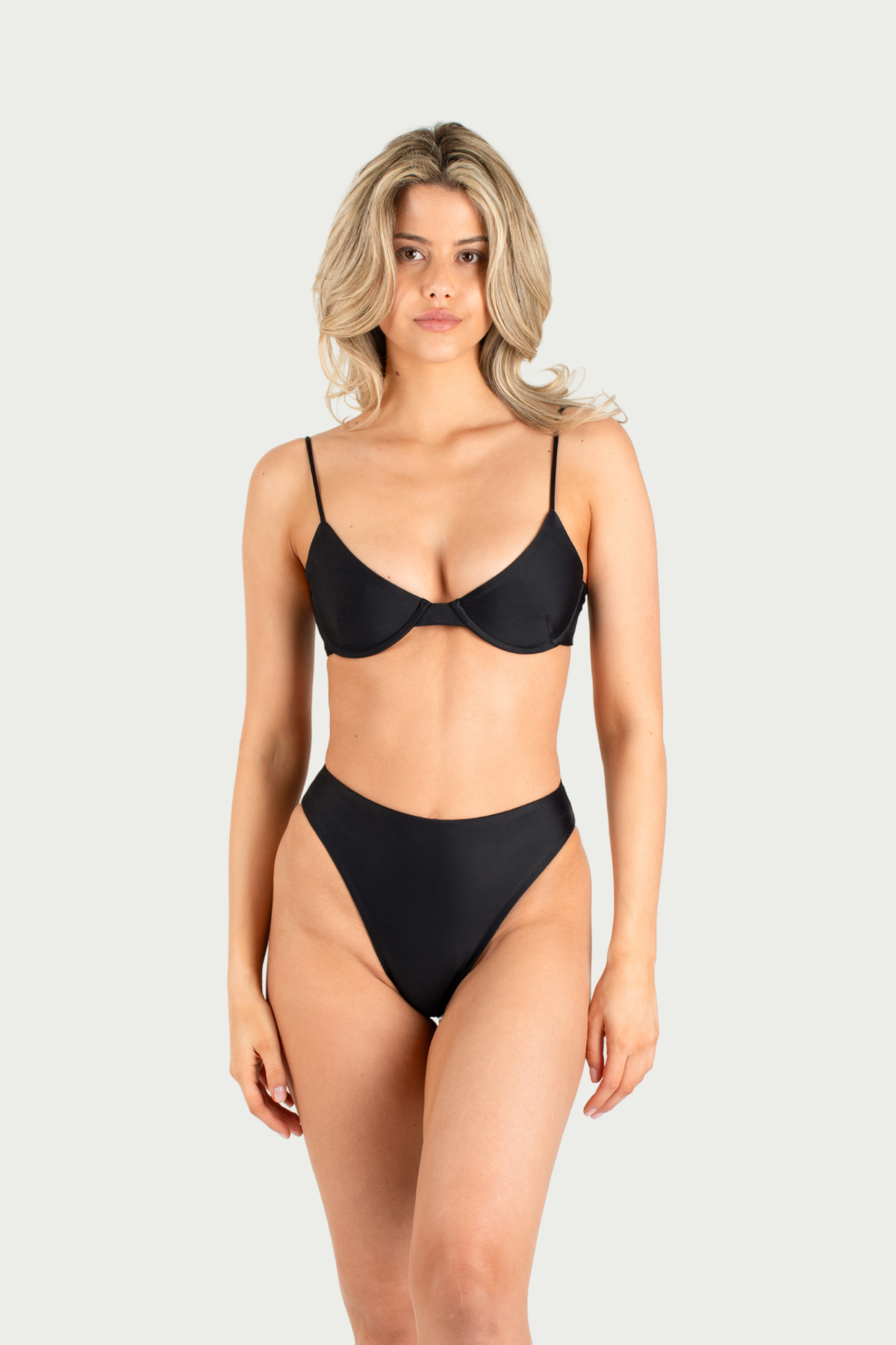 The Rio is our new conservative version of our best selling Marilyn bottoms. This classic style complements every body with it’s high waist, high cut leg and full coverage backside.