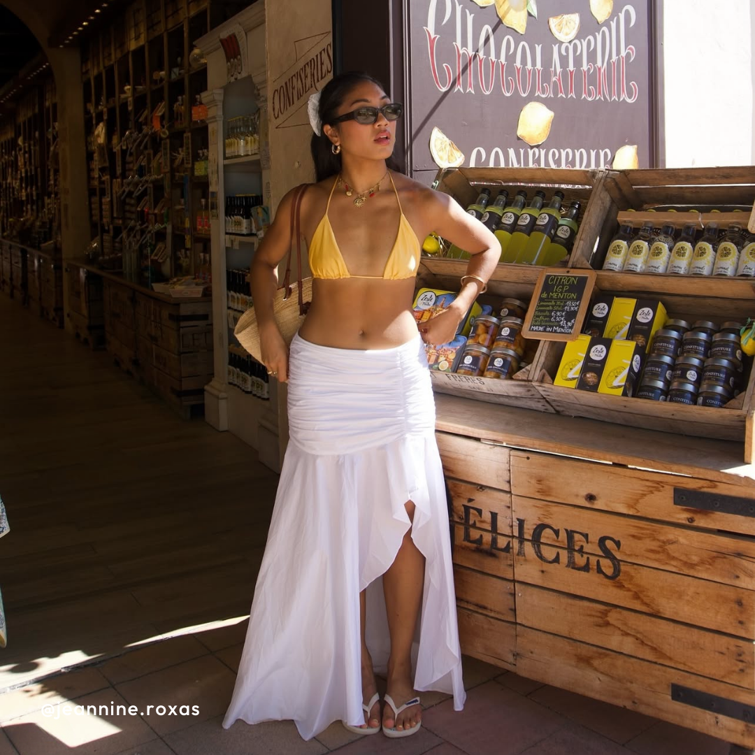 Your most versatile swim top that can be worn 7+ ways. The Sim top is a staple piece with adjustable ruching for more, or less coverage. Minimal, sexy and must have style for any swim collection.