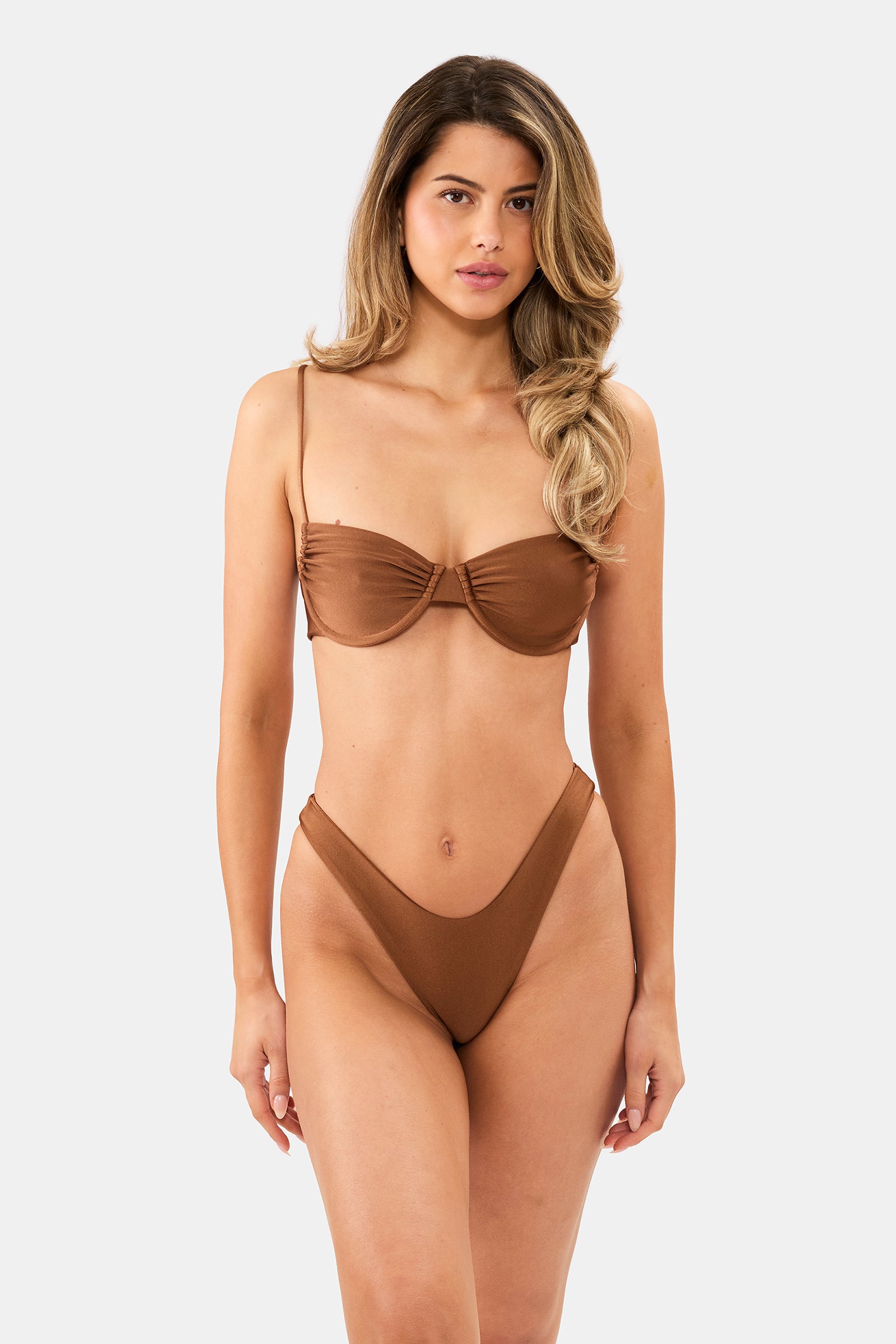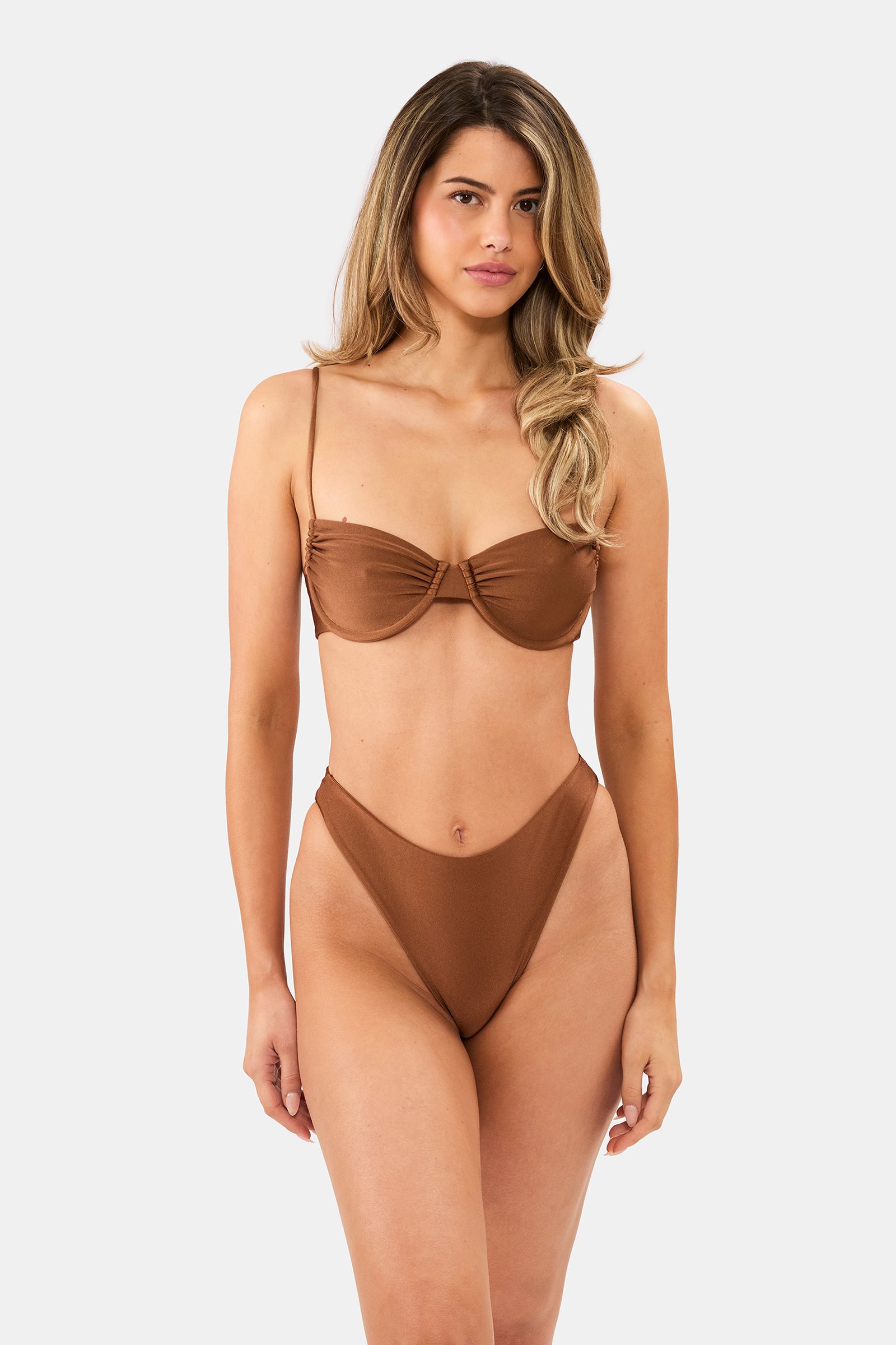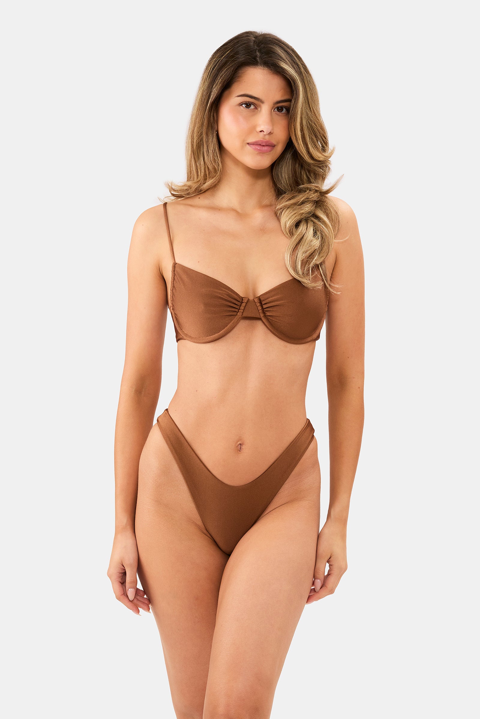 The Sloane is one of our best sellers with its supportive underwire design. It features a side cup adjuster for two different looks - full coverage cup or ruched cup. Designed with adjustable straps and a back tie, allowing you to find the most comfortable fit.