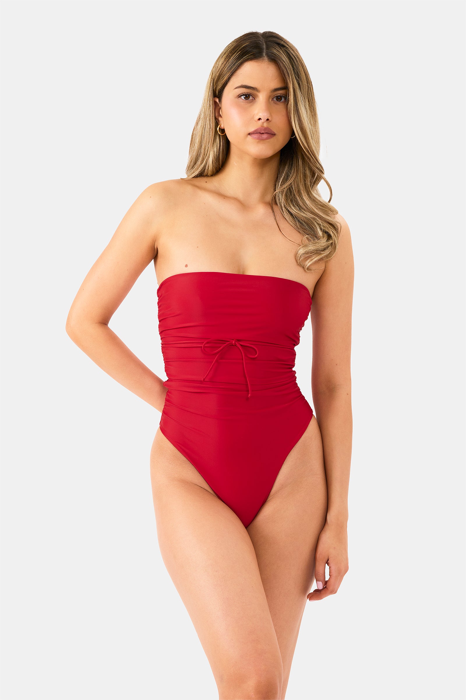 The Palma features ruched sides to cinch your waist and a high cut to elongate your legs. This one piece has a flattering square neckline, adjustable neck ties and cheeky back coverage. Don’t limit her to the beach, the Palma doubles as the perfect bodysuit.